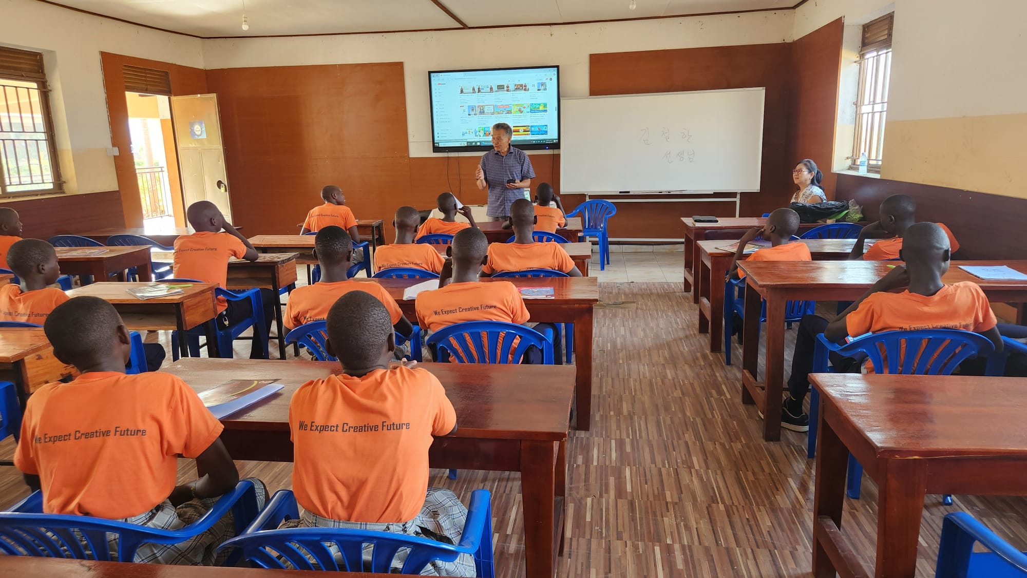At Agojo we Korean language is thought to enhance the international languages for the students and to be able easily facilitate student exchange programs or eminent opportunities for students to study in South Korea in future. It improves social cohesion between the students and the South Korean visitors who normally come to visit the students from time to time and it improves the international relation between Uganda and South Korea